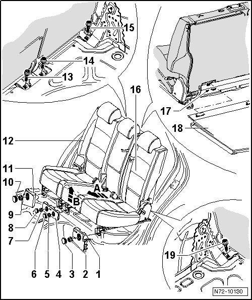 • Removing the right rear bench seat - 12 - is identical.