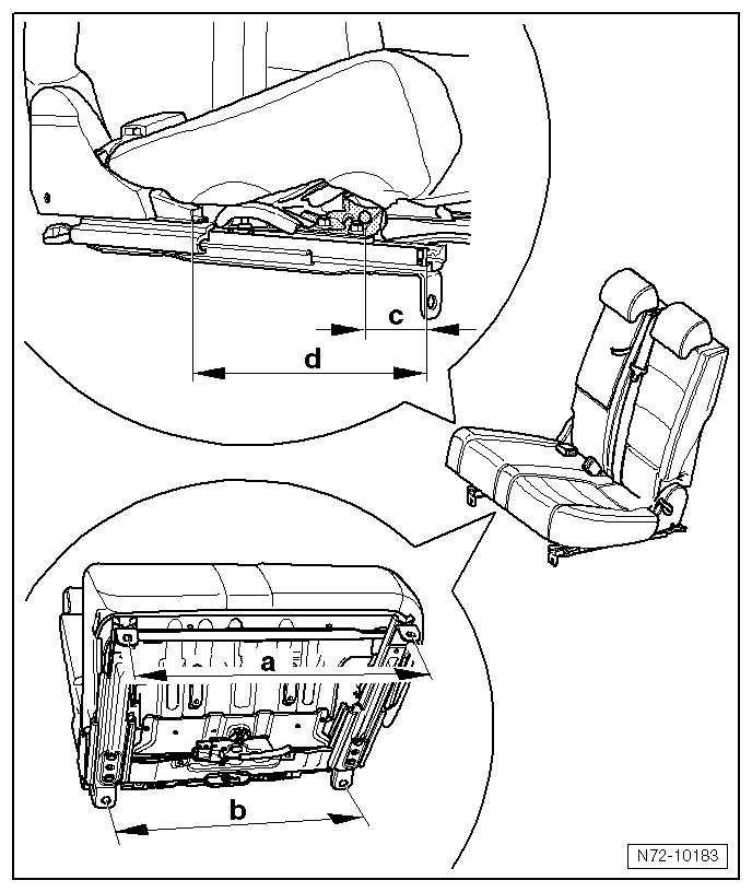 - Align the seat rails to match the distance dimensions - a -, - b -, - c - and - d -.