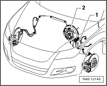 The ABS brake system is divided diagonally (two circuits). The vacuum brake servo unit boosts the brakes pneumatically.