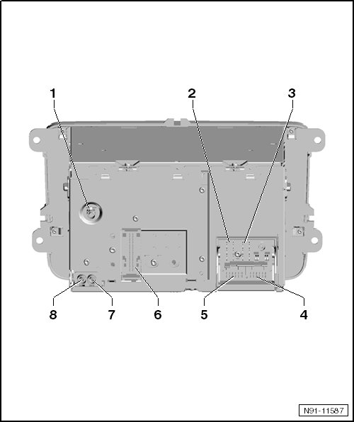 • Terminal assignment, refer to => [ 8-Pin Connector 2, Voltage Supply, CAN-Bus, Telephone Muting ] 8-Pin Connector 2, Voltage Supply, CAN-Bus, Telephone Muting.