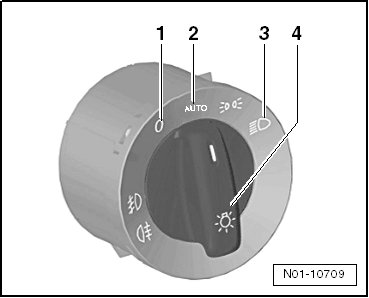 - Turn light switch - 4 - to automatic headlamps position - 2 -.