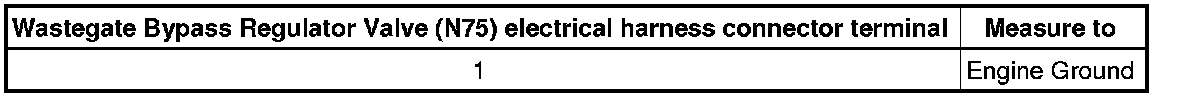 - Using a multimeter, check the Wastegate Bypass Regulator Valve (N75) electrical harness connector terminal 1 to engine ground.