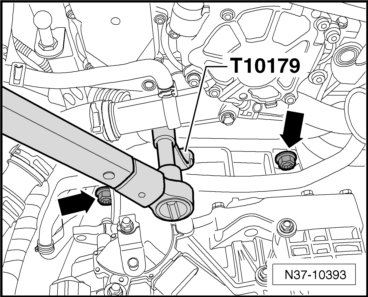 - Remove the bolts - arrows - and then remove the transmission fluid lines - A - from the transmission.