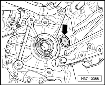 - Remove the flexible disc bolts - arrows - from the bevel box.