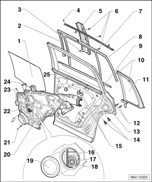 • The illustration shows a right door hinge. The left door hinge is identical.