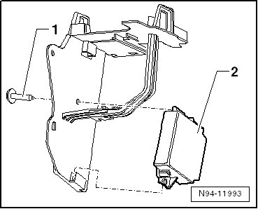 - Remove the screw - 1 - on the back of the bracket and the parking aid control module - 2 -.