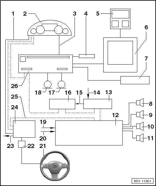 Antenna system overview, refer to => [ Antenna System with Radio/Navigation System RNS 850 Overview ] Antenna System with Radio/Navigation System RNS 850 Overview.
