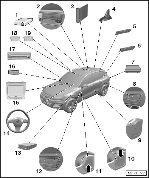 • Removing and installing, refer to => [ Information Electronics Control Module 1 (J794) ] Information Electronics Control Module 1 (J794).