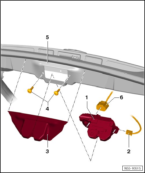 - Remove the bolts - 4 - and the latch - 1 - from the rear lid - 5 -.