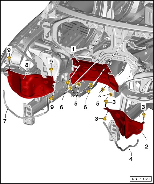 - Lift out the right plenum chamber bulkhead - 8 - with the seal - 7 -.
