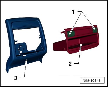 - Unclip the storage compartment - 2 - from the trim panel - 3 -.