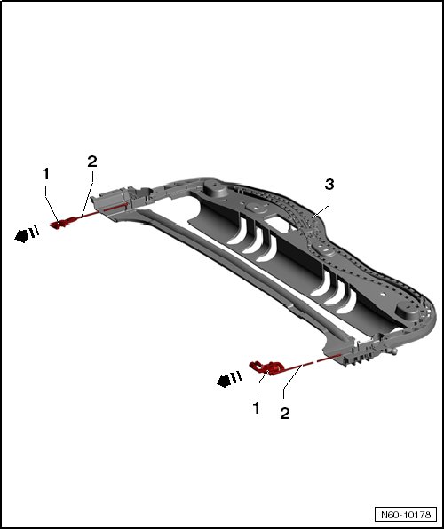- Pull the control cables - 2 - with the carriers - 1 - out of the rear part - 3 - - arrows -.