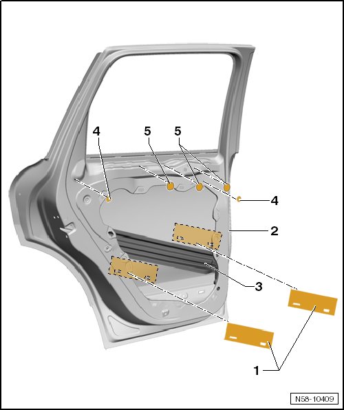 - Heat using a hot air gun (V.A.G 1416) and press onto the outer door panel.