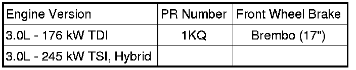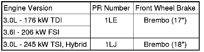 The following table shows the meaning of the PR numbers. These are important for the combination brake caliper/brake disc/brake drum and brake pad.
