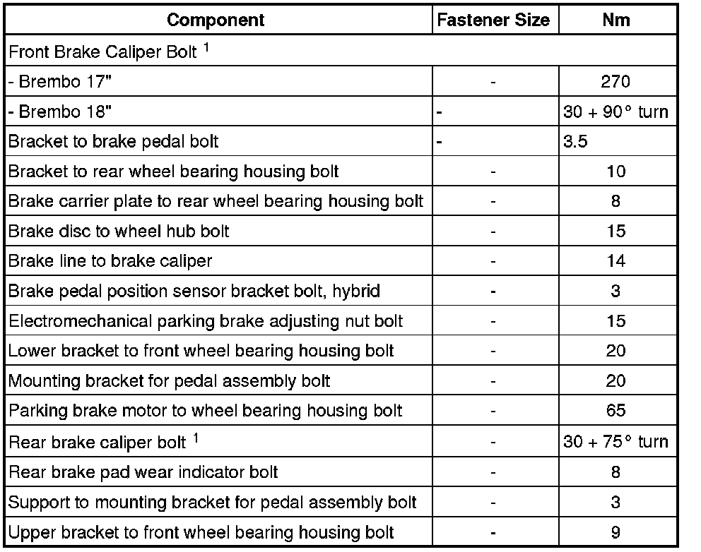Brake System - Mechanical Components - Fastener Tightening Specifications