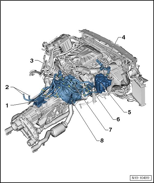 10 - Auxiliary engine coolant heater with Heater Control Module -J162- => [ Auxiliary Engine Coolant Heater Components ] See Image Below.