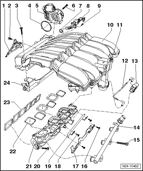 Intake manifold flap vacuum actuator, checking. Refer to => [ Intake Manifold Flap Vacuum Actuator, Checking ] Testing and Inspection.