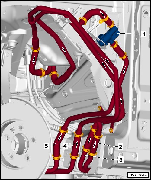 - Removing and installing, refer to => [ Coolant Shut-Off Valve (N82) ] Service and Repair.