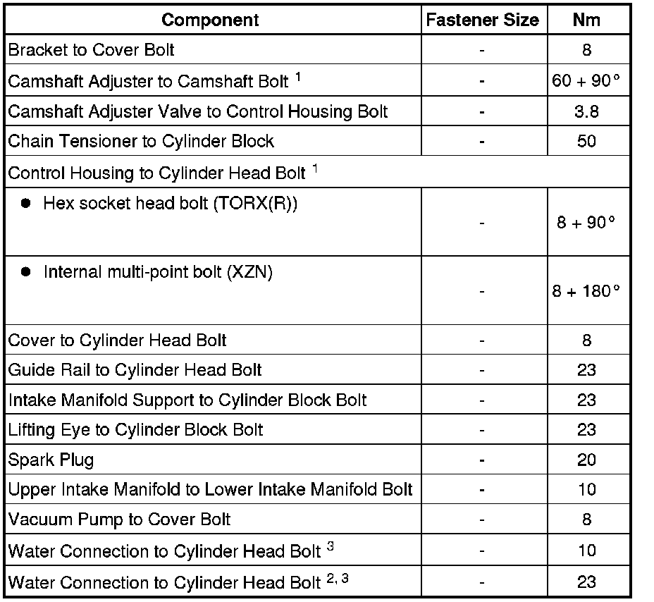 Cylinder Head, Valvetrain - Fastener Tightening Specifications