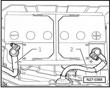 - Only after the positive ( B+ ) terminal has been secured should negative ( - ) terminal clamp - 1 - be installed.