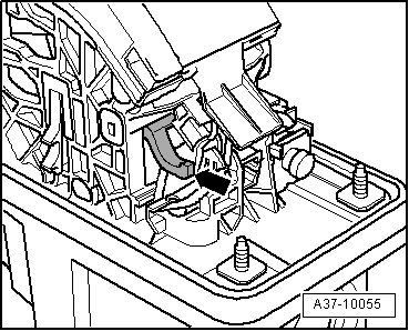 - Release the retaining tab - arrow A - and remove the shift lock solenoid in a forward direction - arrow B -.