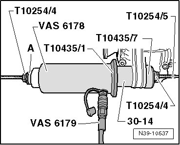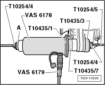- Set the pneumatic/hydraulic foot pump (VAS 6179) to the smallest setting.