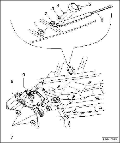 • Removing and installing, refer to => [ Rear Window Wiper Motor (V12) ] Rear Window Wiper Motor (V12).