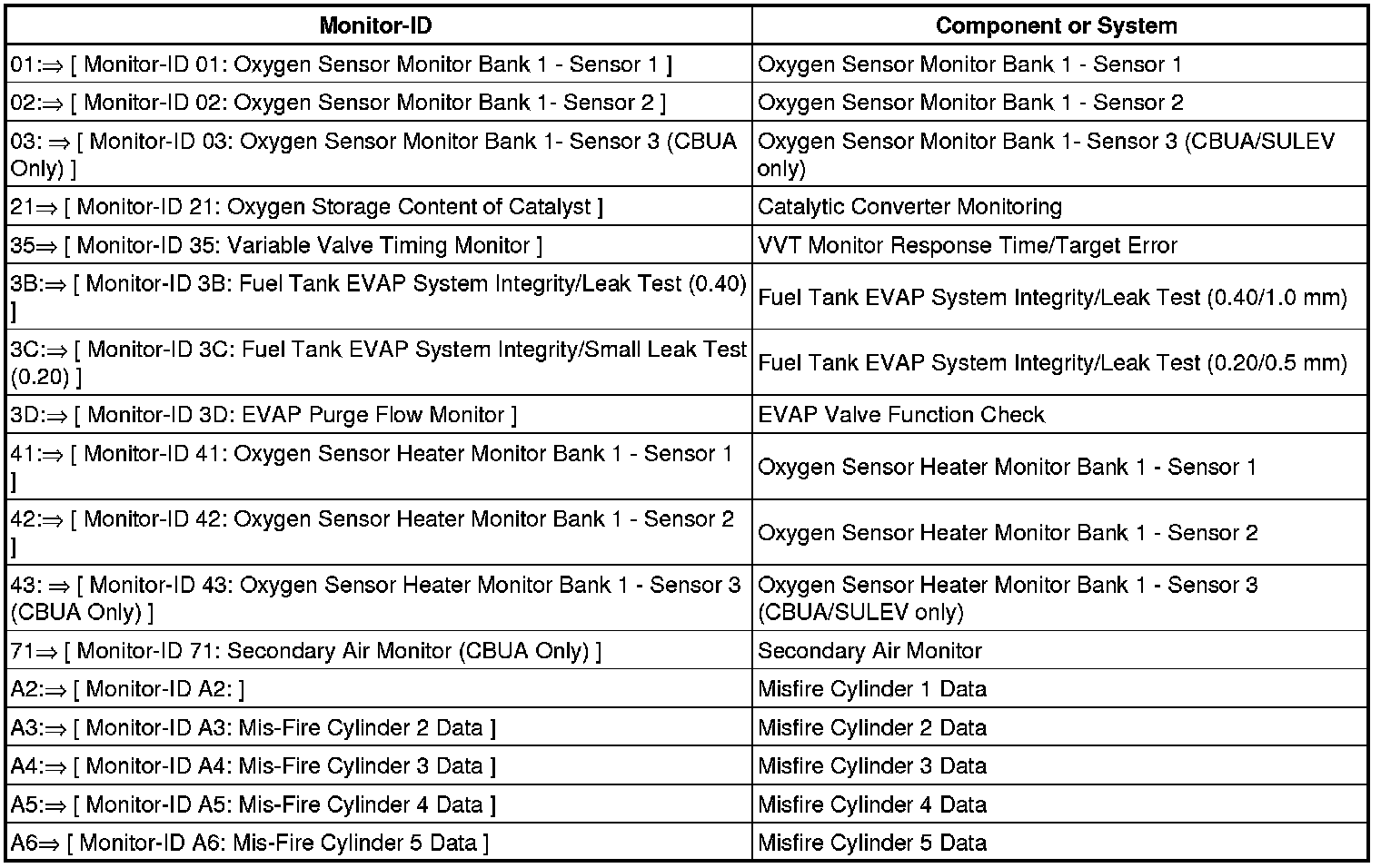 Monitor-ID 71: Secondary Air Monitor (CBUA Only)
