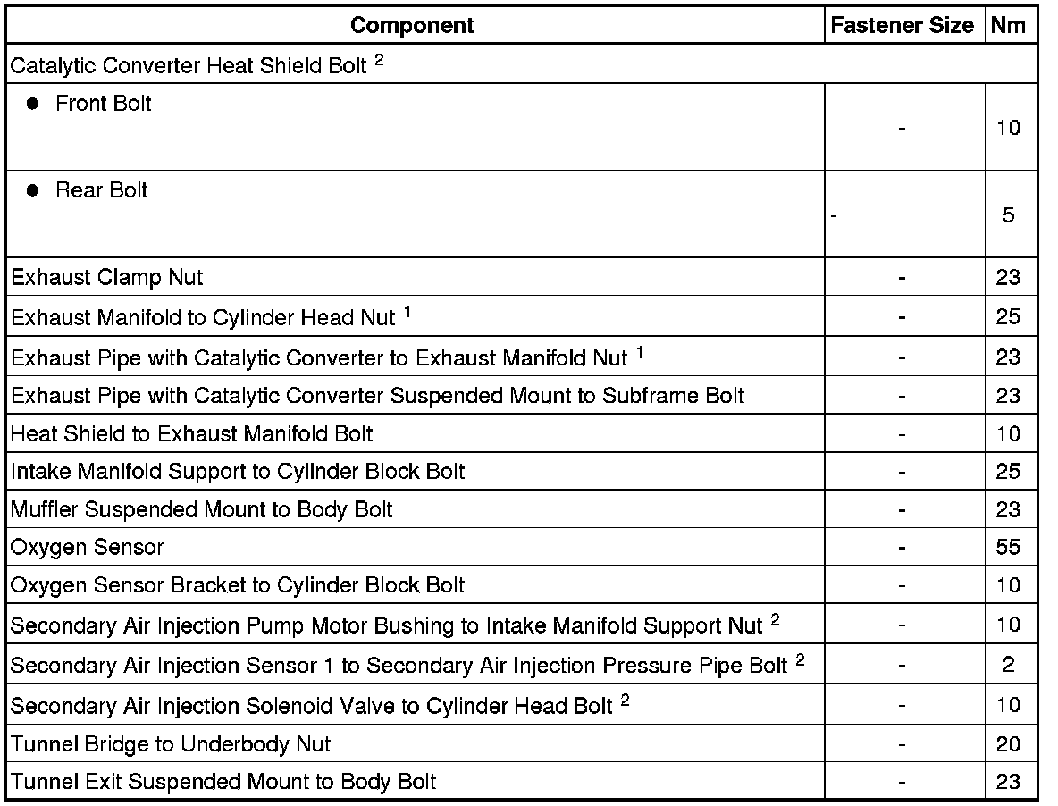 Secondary Air Injection Pipe Bolt Tightening Sequence and Specification