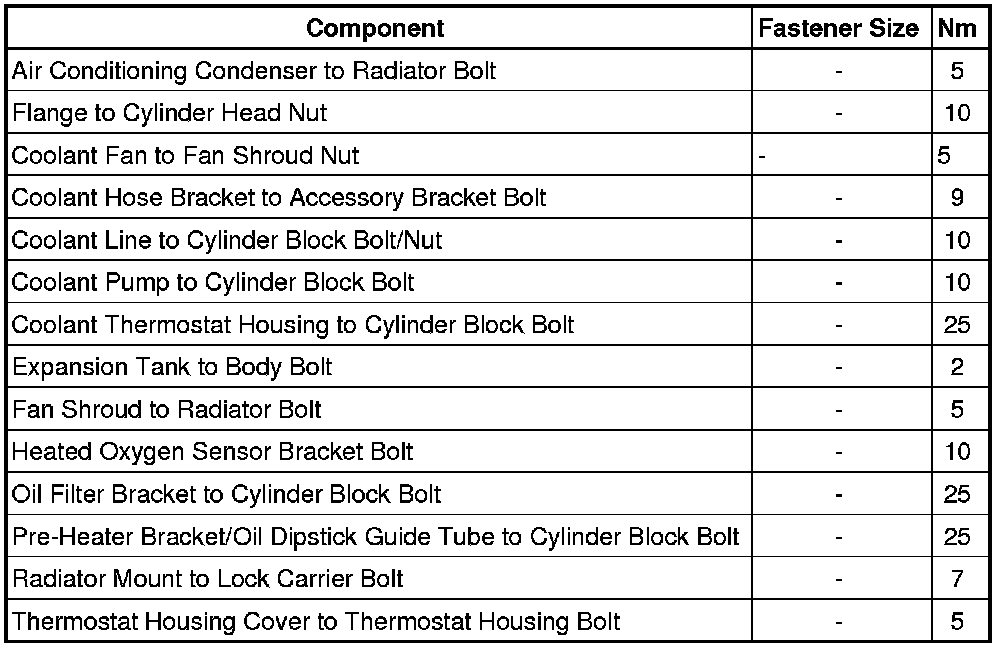 Fastener Tightening Specifications