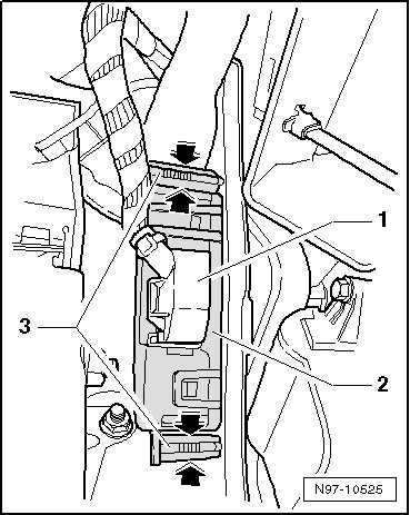 - Press the mounting pins - 3 - together - arrows - and pull them out of the holes.