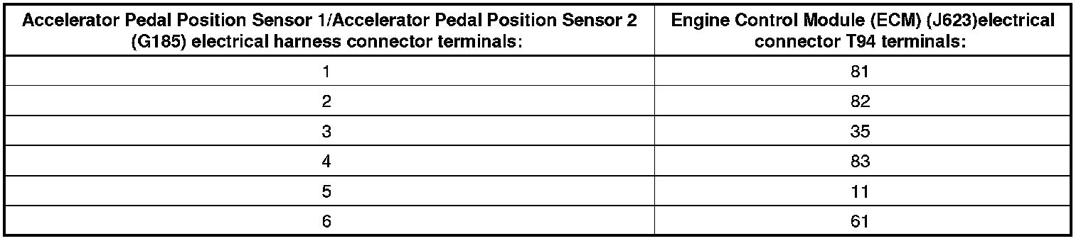 - Replace the Accelerator Pedal Position Sensor 1 (G79)/Accelerator Pedal Position Sensor 2 (G185). Refer to the Repair Information.
