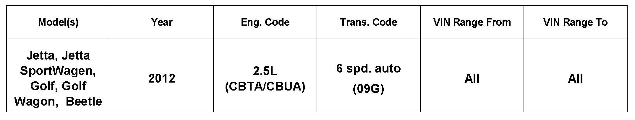 This software update is for slight hesitation related concerns on 2012 model year vehicles, equipped with 2.5 liter engines only.