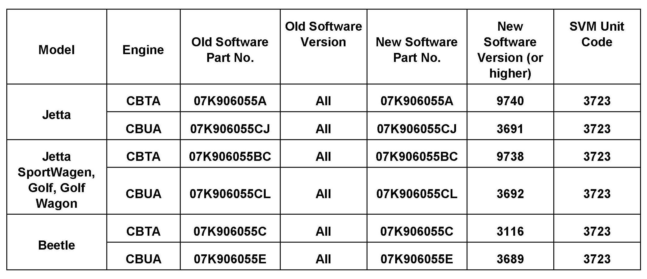 ^ Update the Engine Control Module using the SVM Unit code as listed in the table.