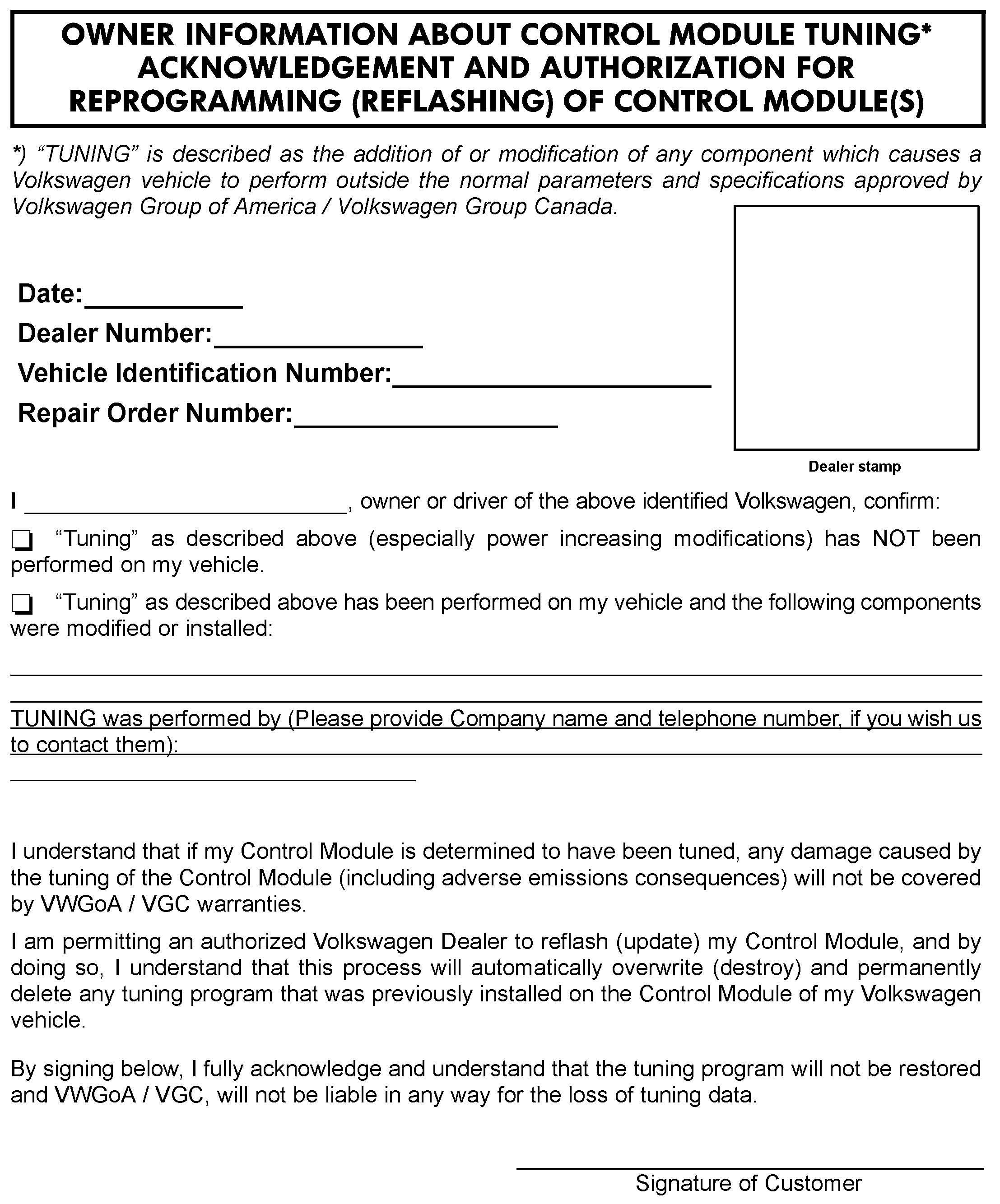 Control Module Tuning Sheet