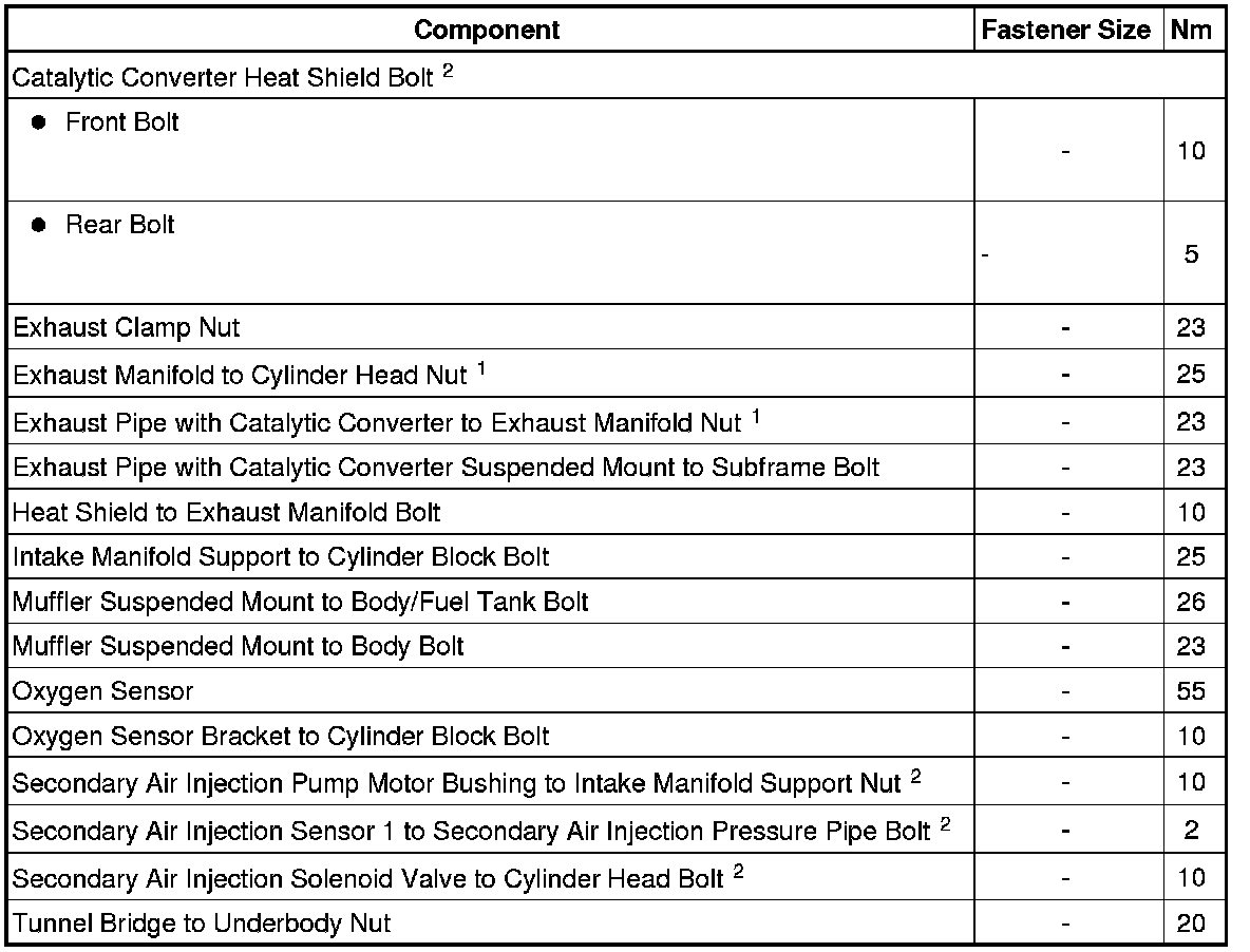 Secondary Air Injection Pipe Bolt Tightening Sequence and Specification