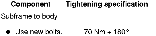Continue removing the subframe with the electro-mechanical steering gear. Refer to => [ Subframe and Steering Gear, Electro-Mechanical Steering Gear ] Subframe and Steering Gear, Electro-Mechanical Steering Gear.