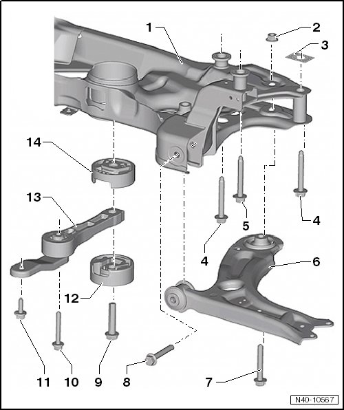 • Removing and installing (left side of the vehicle with a DSG transmission or automatic transmission) refer to => [ Control Arm, Left Side of Vehicle with DSG or Automatic Transmission ] Control Arm, Left Side of Vehicle with DSG or Automatic Transmission