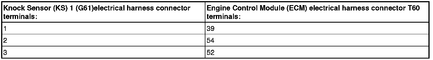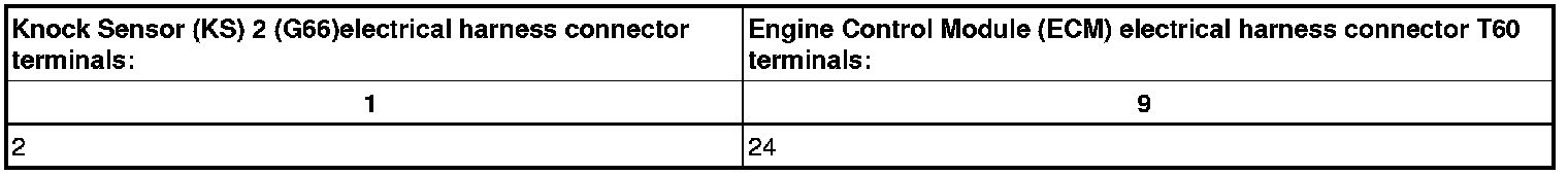 - Disconnect Knock Sensor (KS) 1 (G61) electrical harness connector or Knock Sensor (KS) 2 (G66) electrical harness connector.