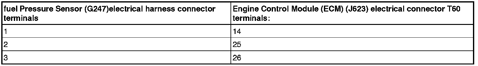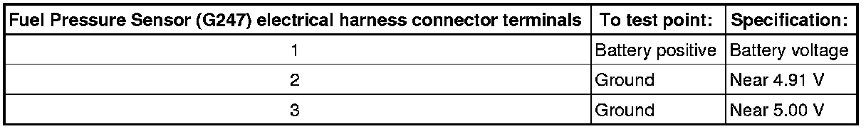 - Using a multimeter check the Fuel Pressure Sensor (G247) electrical harness connector for voltage.