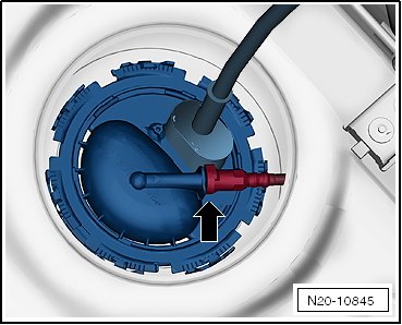 • The fuel delivery rate is first checked inside the engine compartment with Guided Functions "Check Fuel Delivery Rate, Quick Test". Perform a 2nd measurement on the fuel delivery unit flange if the minimum delivery rate is not attained.