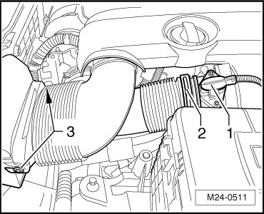 - Remove the bolts - 3 - and the intake hose.