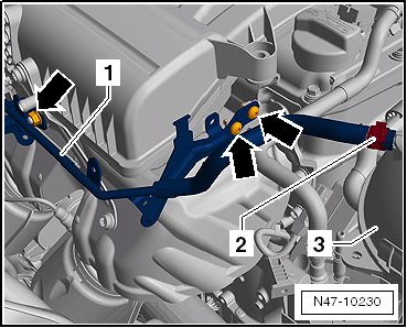 - Disconnect the connector - 2 - from the EVAP canister purge regulator valve 1 (N80) - 1 -.