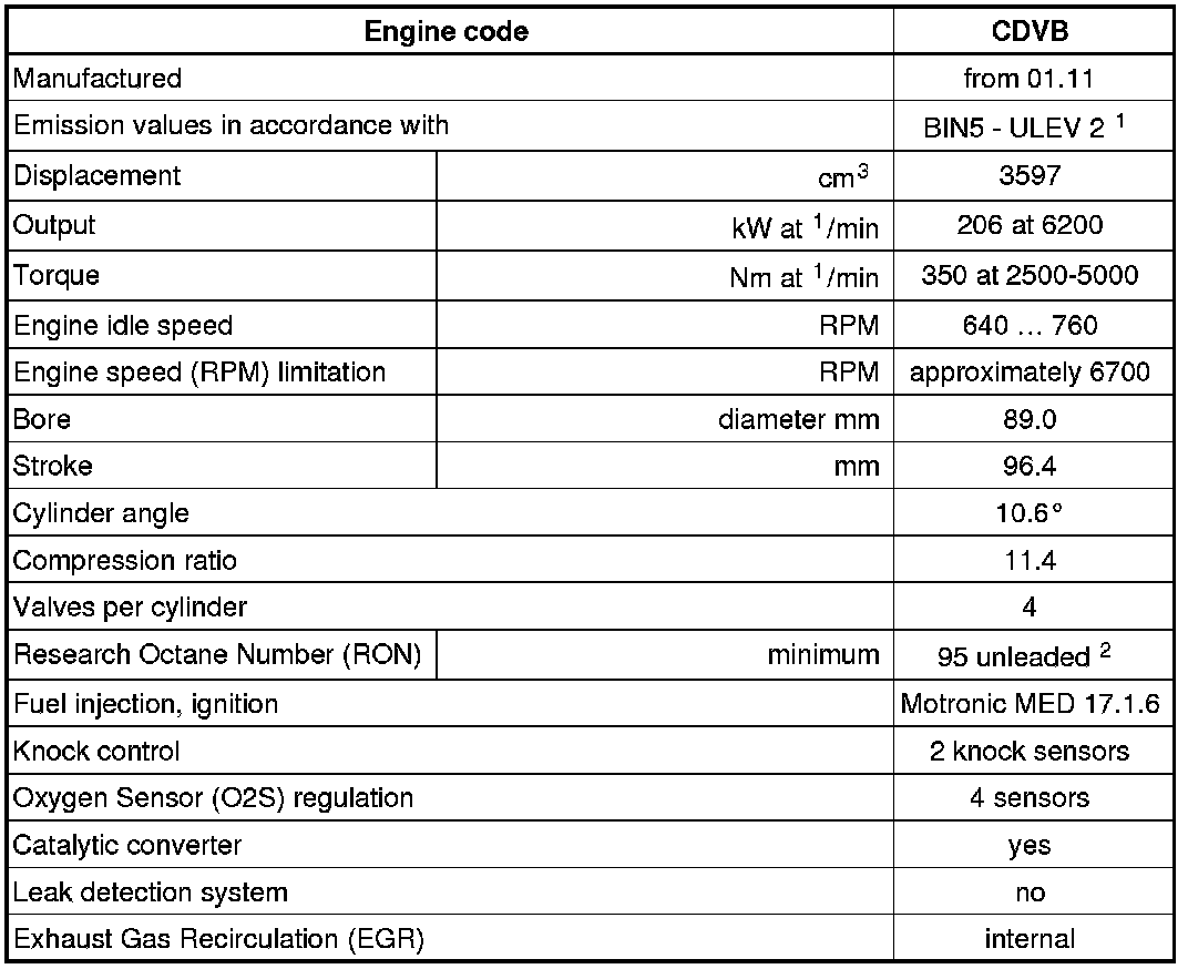 Four digit engine codes beginning with the letter "C" are used. The first three digits describe the mechanical structure of the engine and are still stamped on the engine, as before. The fourth digit describes the engine output and torque and depends on the Engine Control Module (ECM). The four digit engine code is on the type plate, the vehicle data label and the ECM.