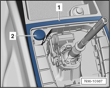 - Lift the trim frame - 1 - just enough and disconnect the connector from the start system button - 2 -.