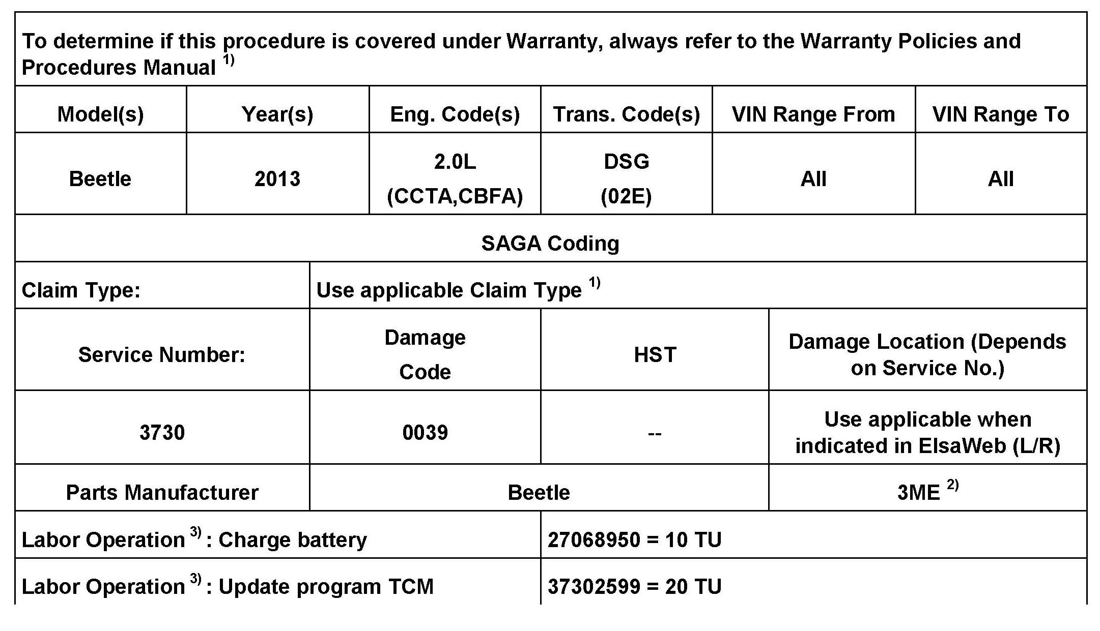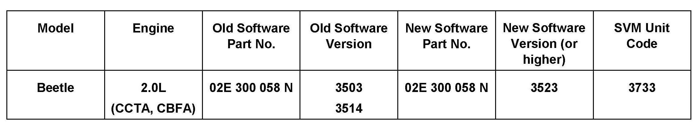 ^ Update the Transmission Control Module using the SVM Unit code as listed in the table shown.