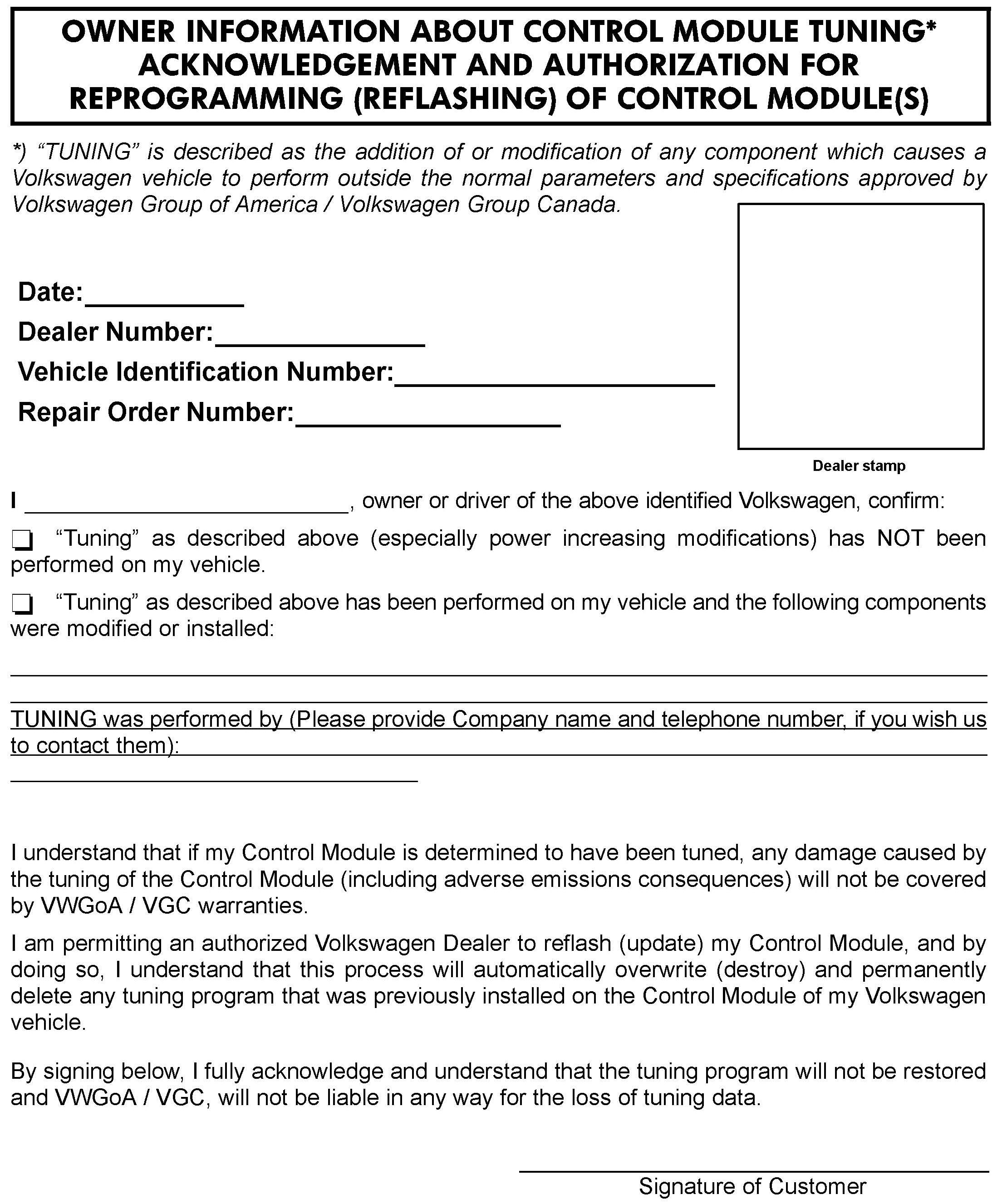 Ensure ECM/TCM Tuning Form has been completed and signed by customer as required in SVM Technical Bulletin Instance 2014603.