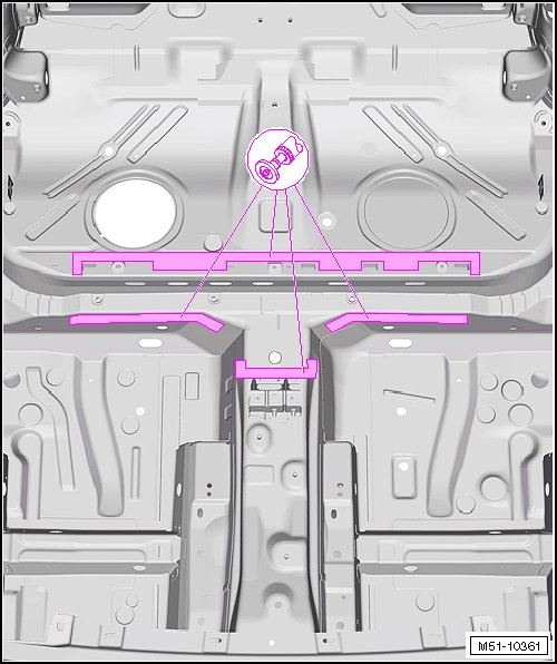 - Weld the double floor panel to the tunnel reinforcement with a gas-shielded arc continuous weld seam (staggered) and gas-shielded arc plug weld seam.