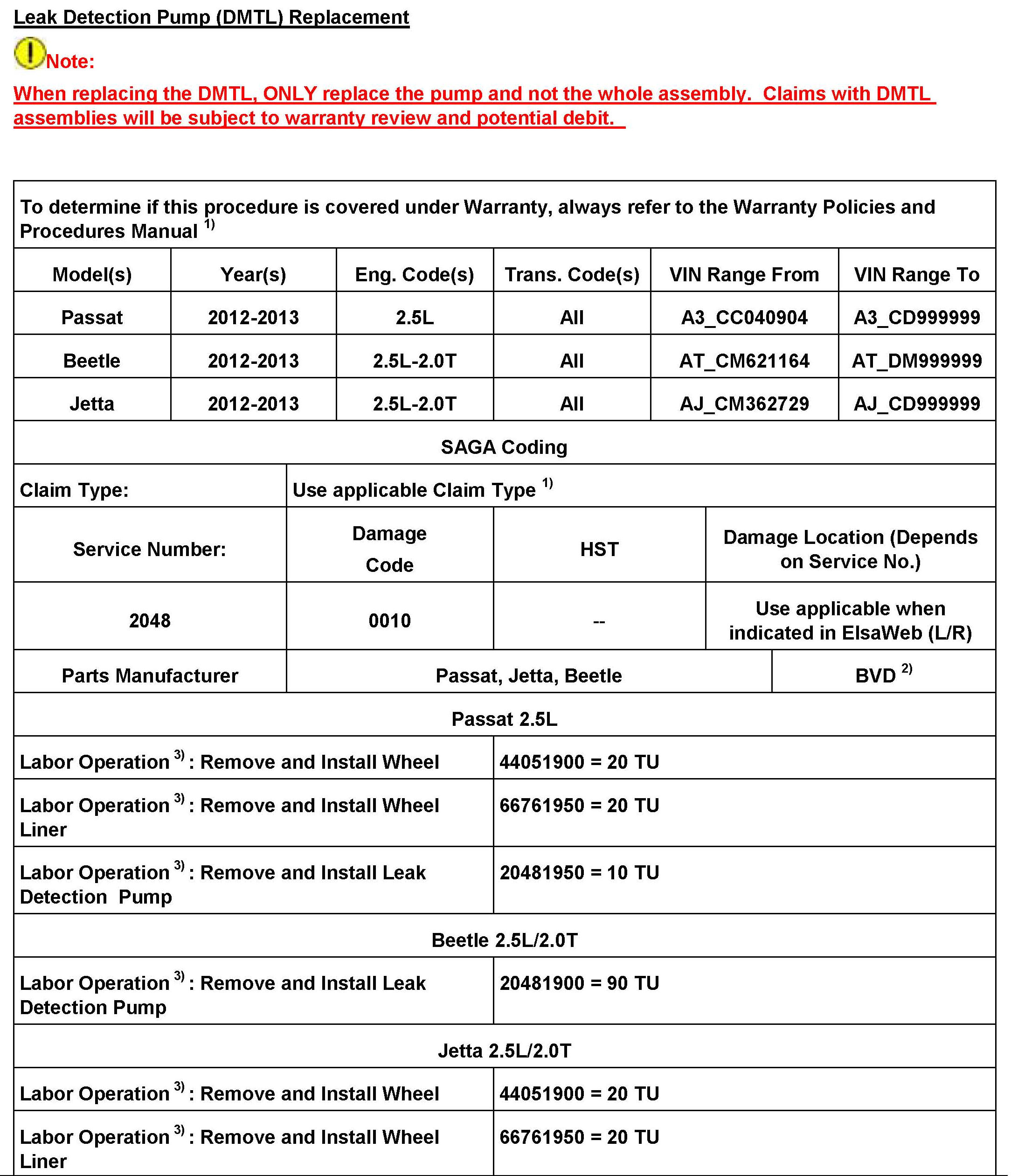 When replacing the DMTL, ONLY replace the pump and not the whole assembly. Claims with DMTL assemblies will be subject to warranty review and potential debit.