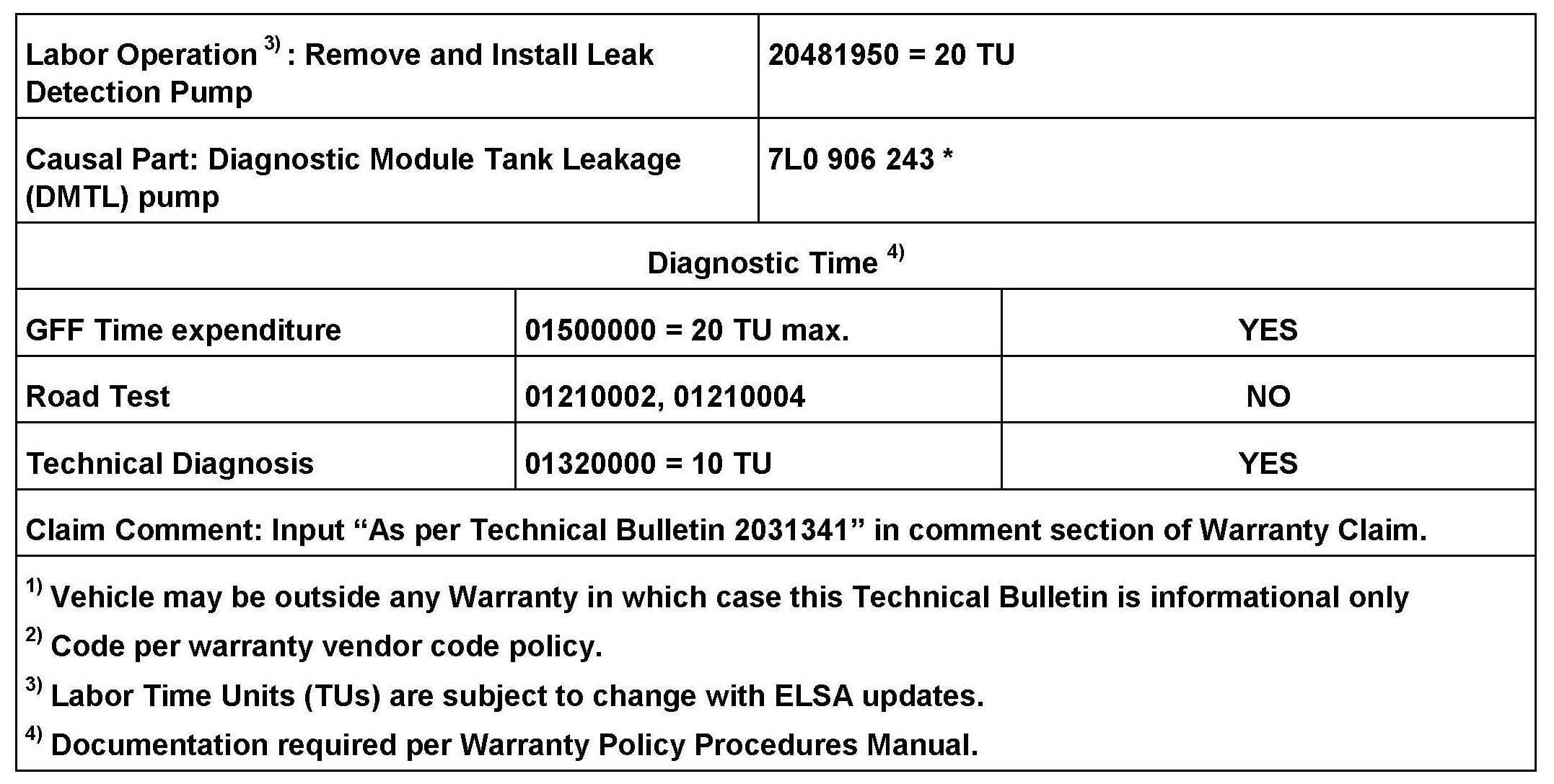 2031341 *Supersedes T.B. V011232 dated November 30, 2012 to correct labor